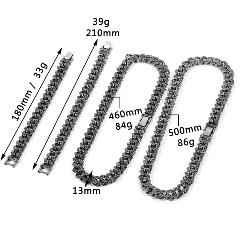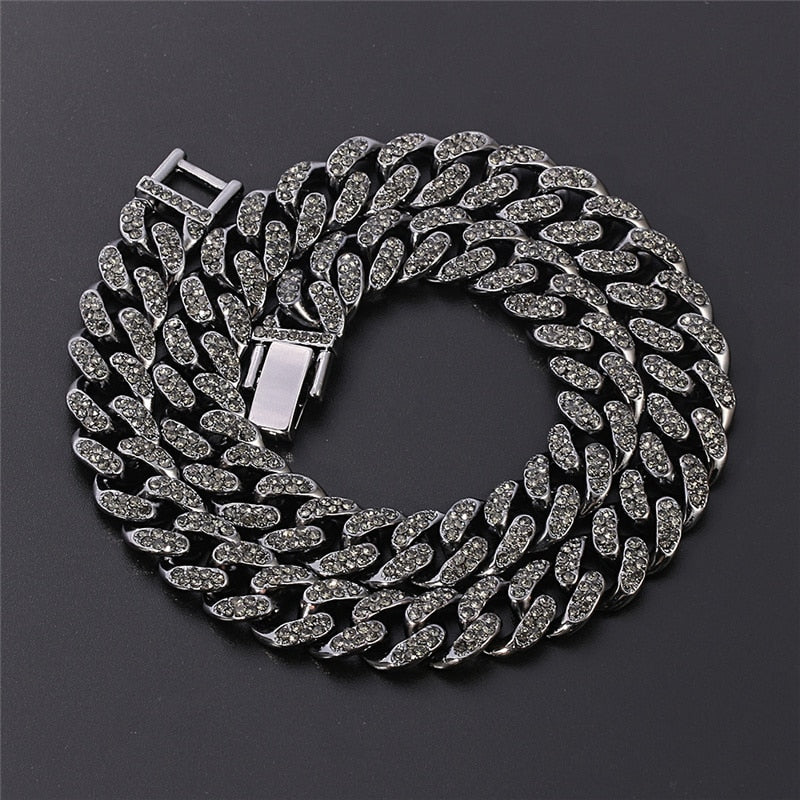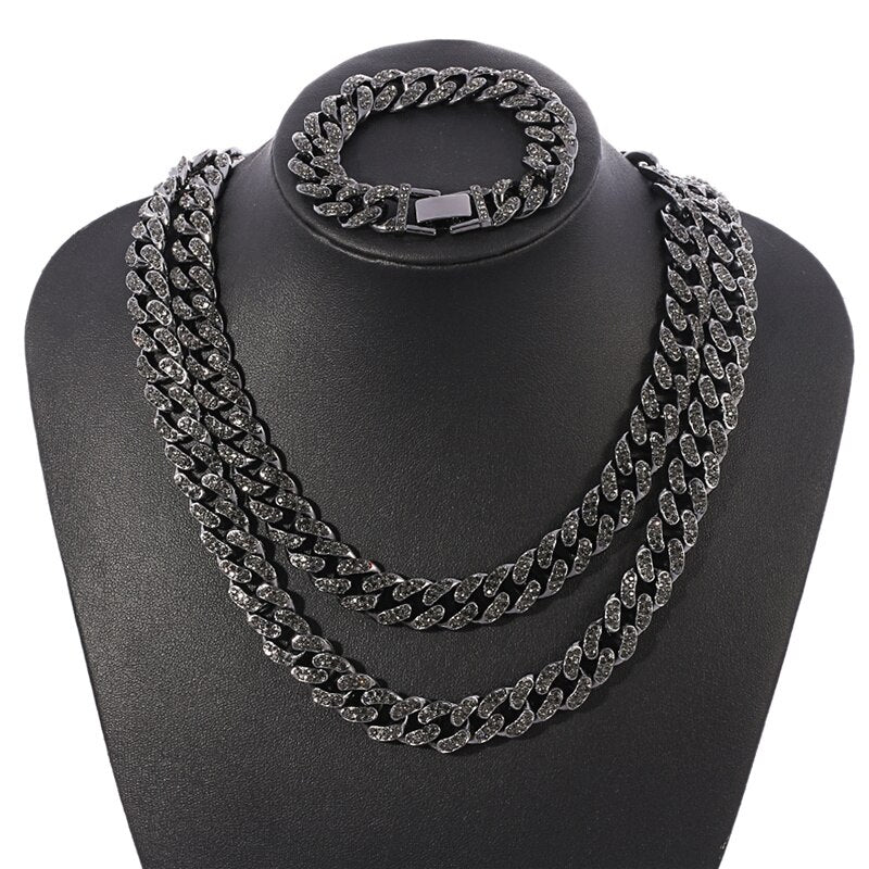 Introducing Iced Out Gun Black Necklaces, the latest must-have accessory for the fashion-forward man. Crafted from high-quality gun black metal, these necklaces feature dazzling rhinestones that catch the light at every turn. The perfect way to add a touch of luxury to your look, these necklaces are sure to turn heads wherever you go. Whether you're dressing up for a night out or just accenting your everyday style, Iced Out Gun Black Necklaces are the perfect finishing touch. So don't wait any longer, get yours today and ice out your look!